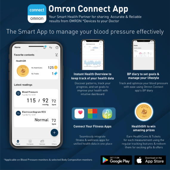 With Bluetooth connectivity, you can easily sync your readings to the Omron Connect App, helping you track and manage your blood pressure anytime, anywhere.