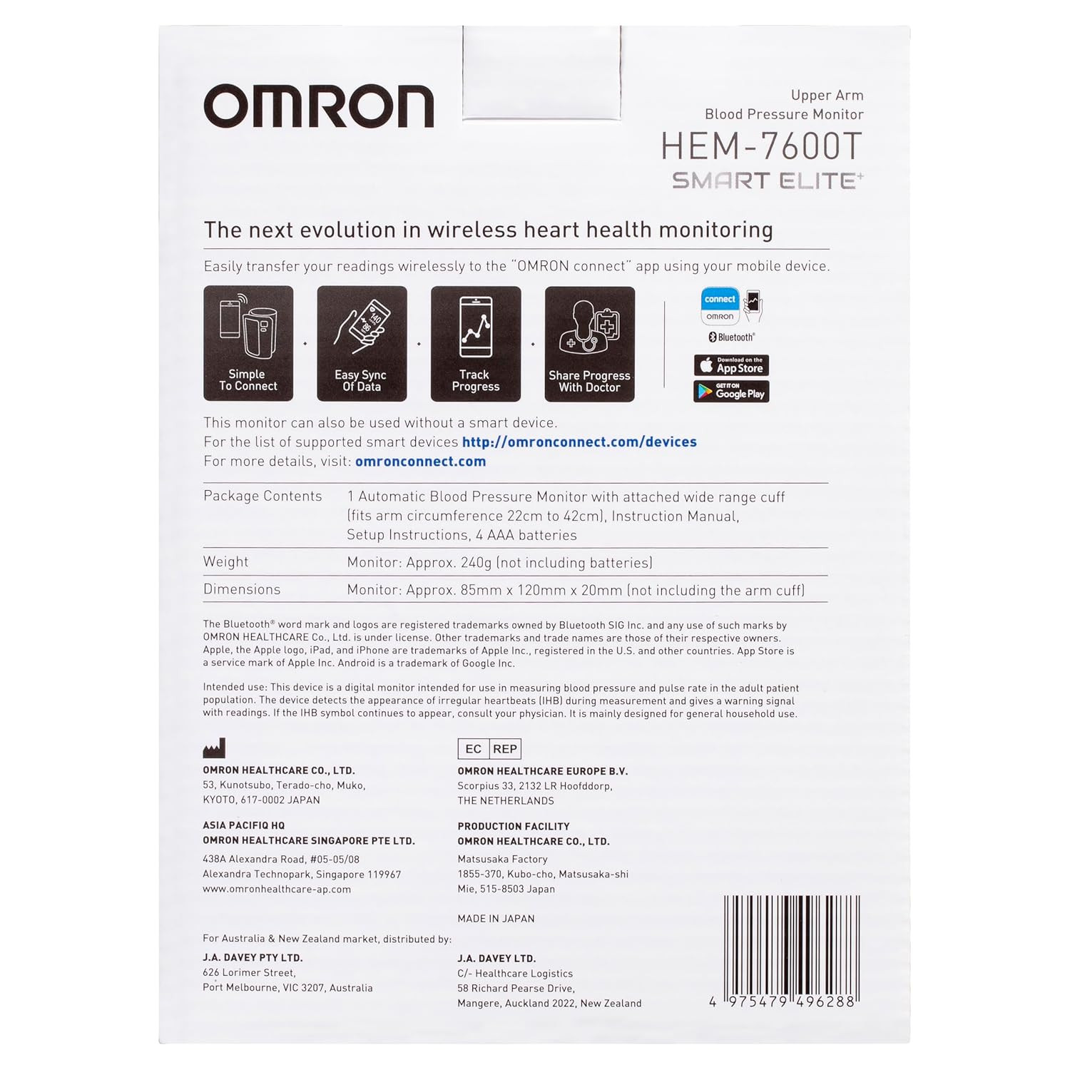 With built-in Bluetooth connectivity, you can sync your readings to your smartphone via the Omron Connect app. This allows you to store historical measurements, monitor trends, and share accurate data with healthcare professionals.