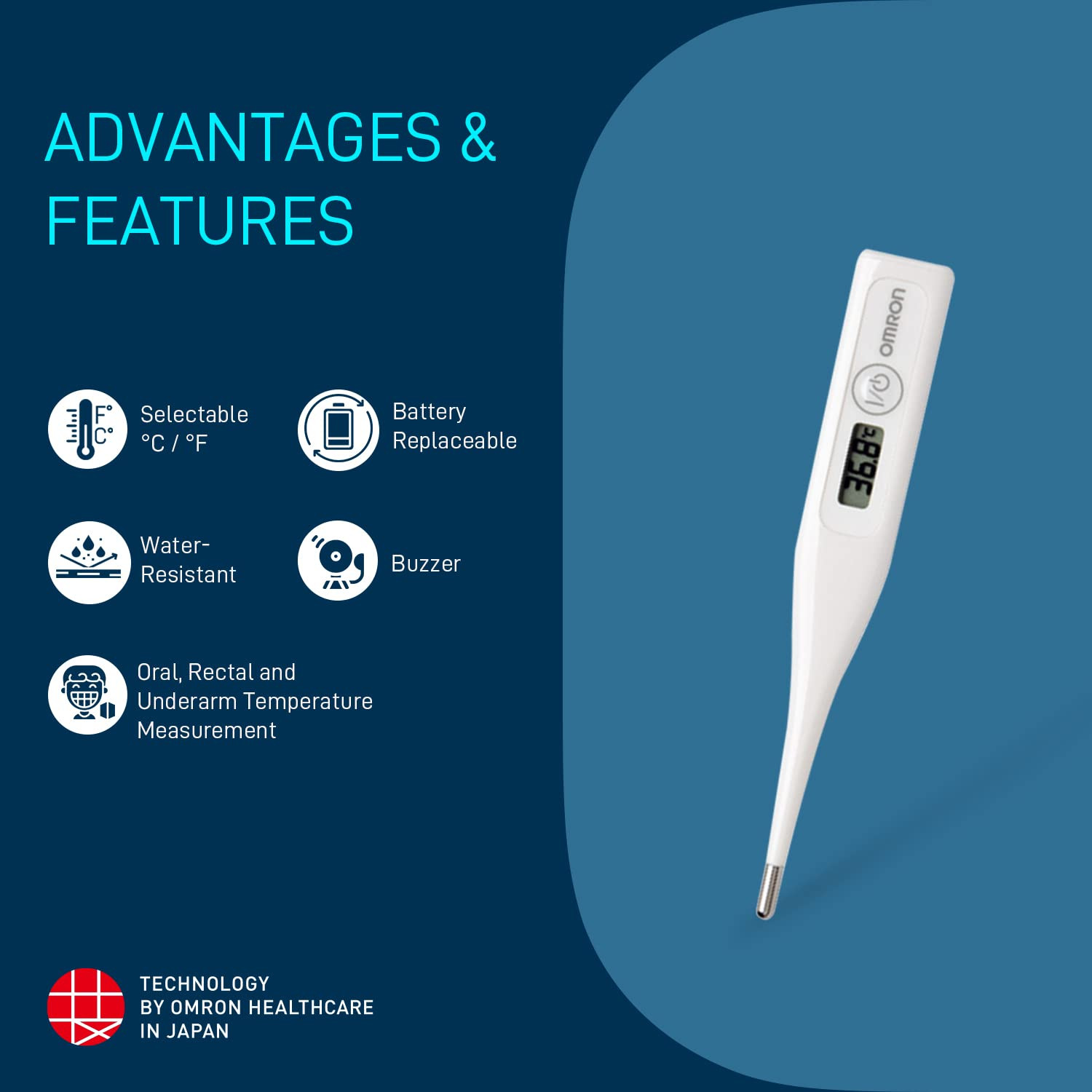 This thermometer provides fast readings in both Celsius and Fahrenheit, ensuring flexibility and convenience for users. Its clear digital display allows you to easily read temperature results, even for first-time users.
