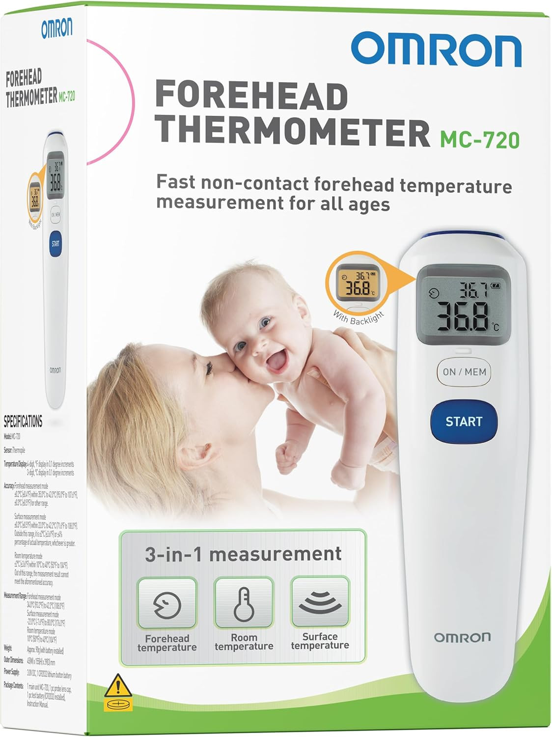 The Omron MC 720 Non-Contact Forehead Thermometer is a high-quality infrared thermometer designed for quick, safe, and hygienic temperature measurement without physical contact. Ideal for families, clinics, and public health use, this device allows you to measure body temperature instantly by simply scanning the forehead.